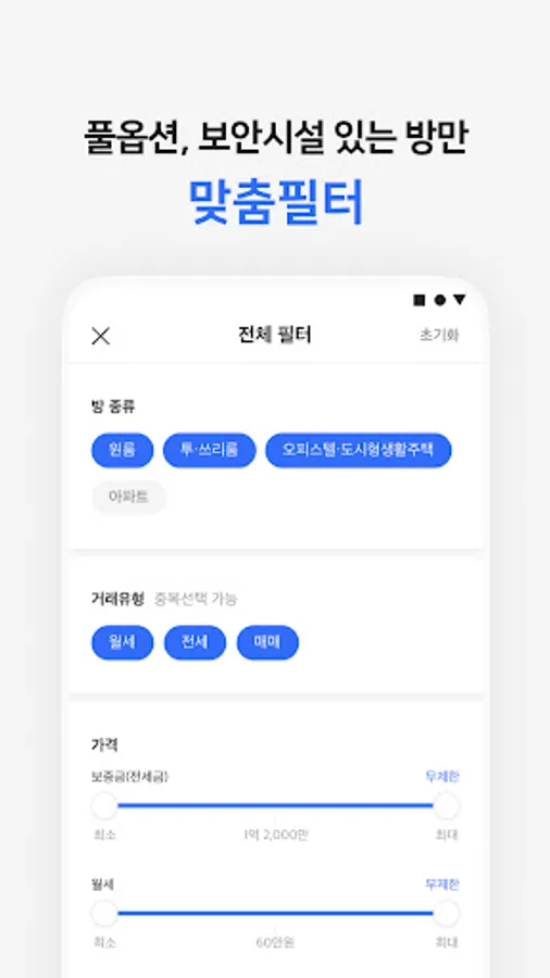 If you select the area you want on the map, you can check the average rental price from one room to officetel.