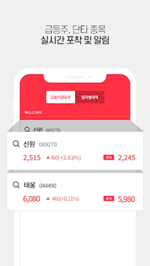 The stock radar is a soaring stock searcher that catches danta, upper limit and quasi upper limit and pushes them.