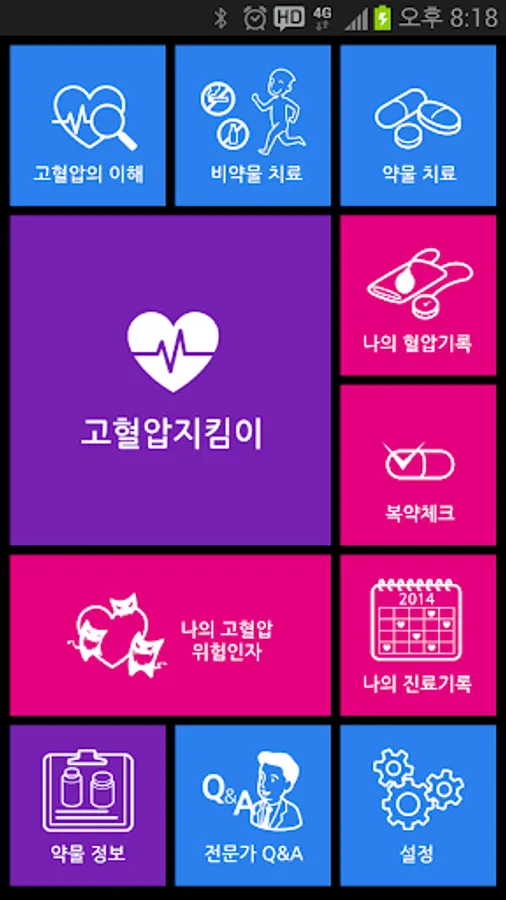 ‘고혈압 지킴이’는 고혈압 환자 및 일반인에게 고혈압에 대한 정보를 이해하기 쉽게 전달하고, 자가 혈압, 체질량지수 등의 건강 기록들을 입력, 조회하면서 개인 건강을 관리할 수 있는 무료 어플리케이션입니다.