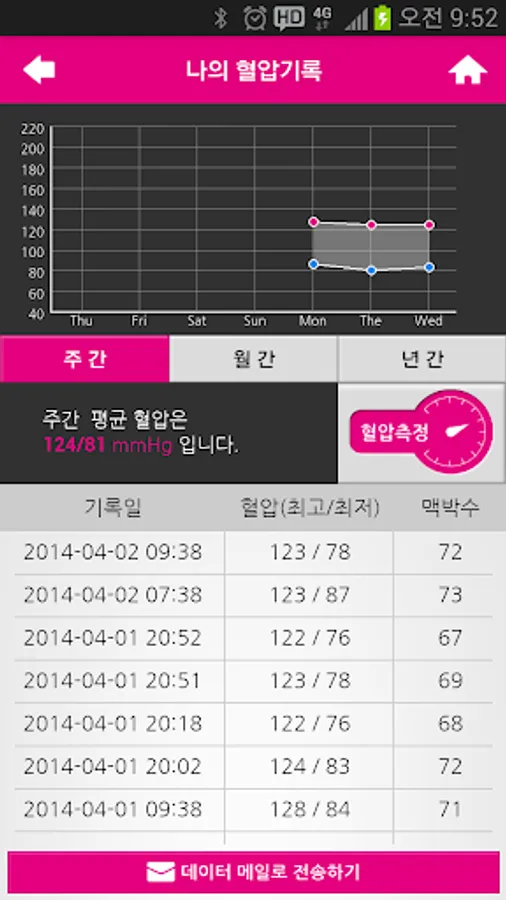 - 혈압, 체질량지수 등 개인의 건강과 관련한 수치에 대한 누적 관리가 가능합니다.