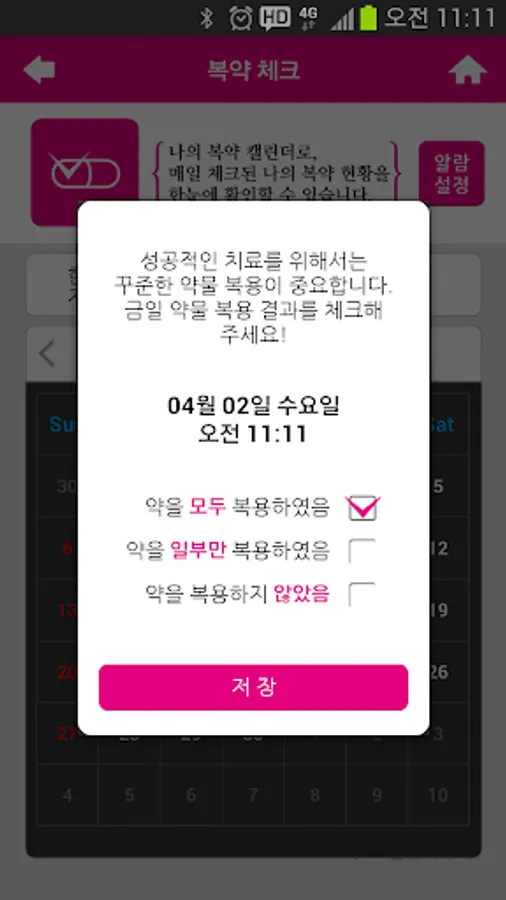- 병원 내원일 및 복약 시간에 대한 알림 설정 및 관리가 가능합니다.
