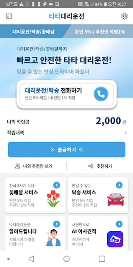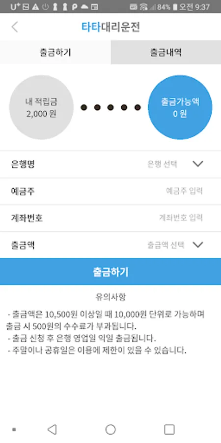☞ Cash withdrawal if the total of flower delivery, surrogate operation, quick service, and vehicle consignment exceeds 10,000 won