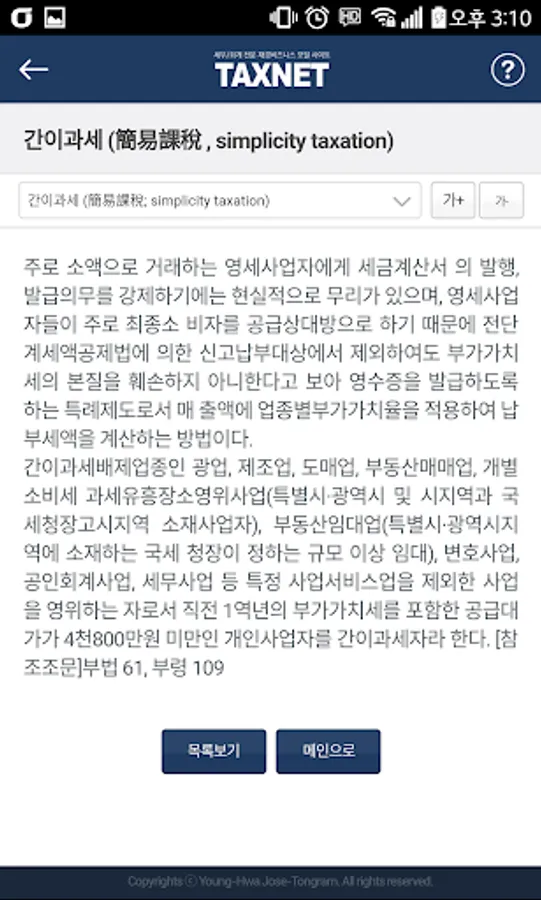 Therefore, in Taxnet (http://www.taxnet.co.kr), it is easy to find the terminology in the field of tax law and solve the difficulty of maximization so that people who are new to tax law can be a guide to confidence. To make it.