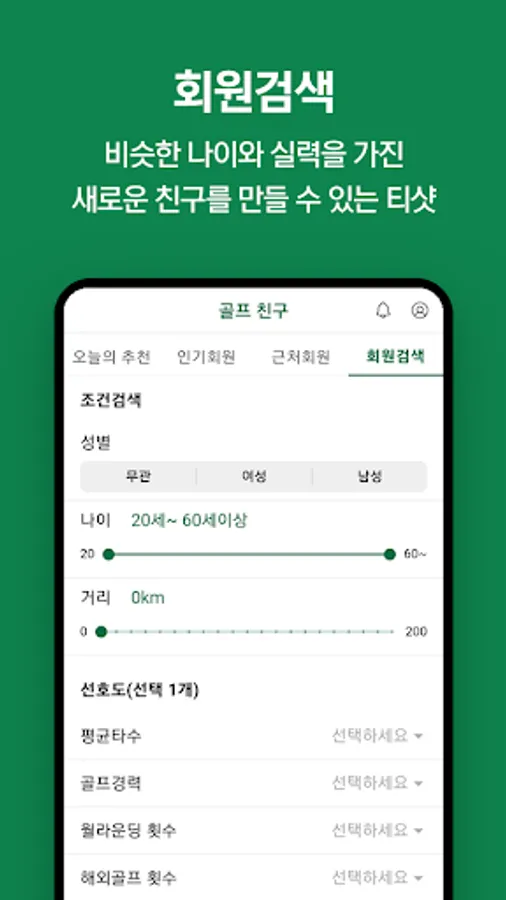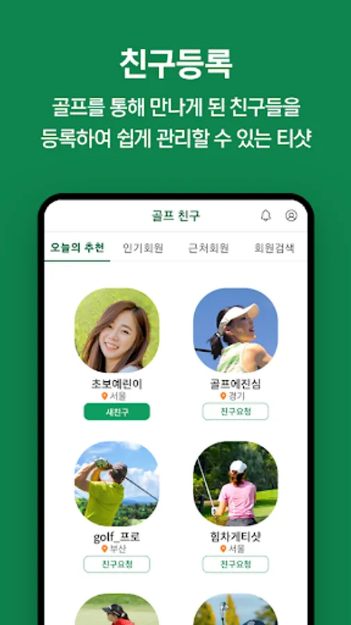 : You can view profile, photos, and golf skills information such as gender, age, and region.