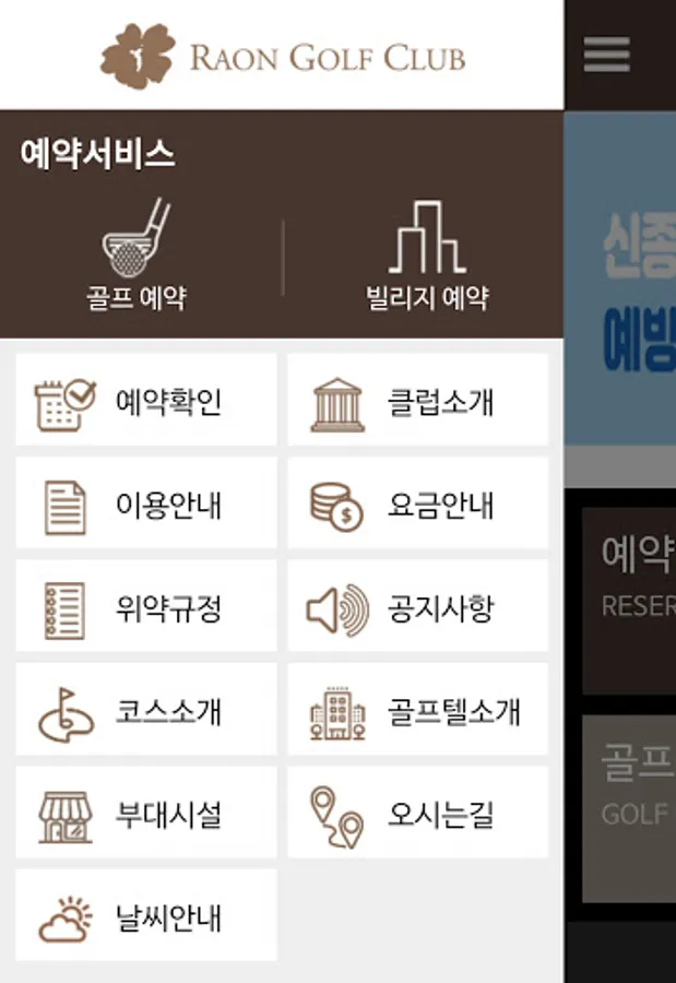 -We provide various information such as usage fee, reservation status, weather, and events of'Raon Golf Club'.