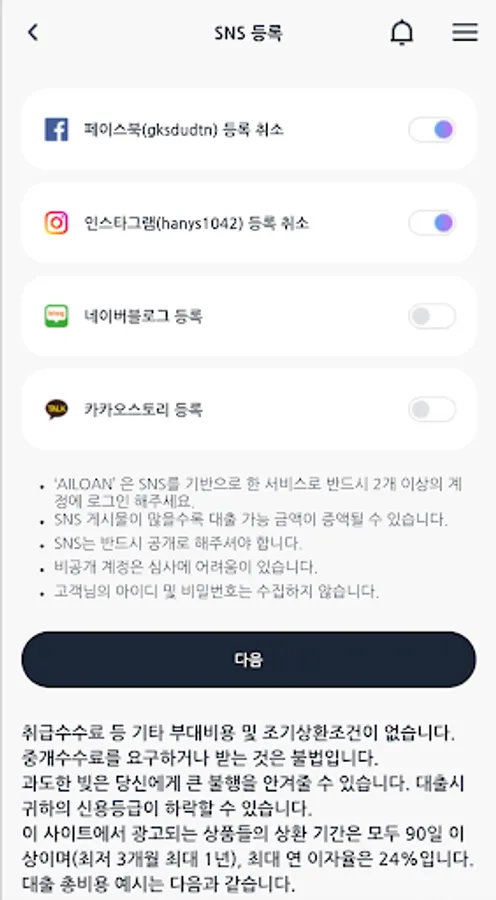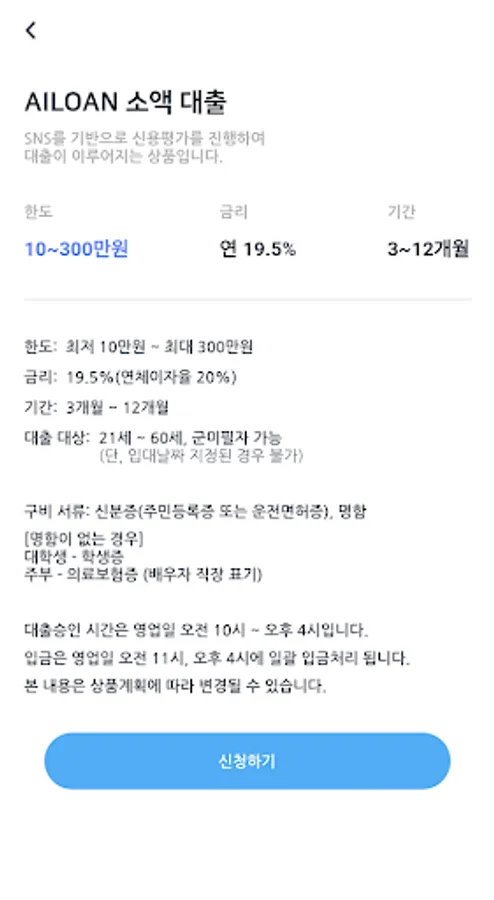 ※ If your credit rating is lowered when using a loan product, additional loans may be restricted, or you may experience disadvantages such as an increase in loan interest rates or a decrease in the loan limit.