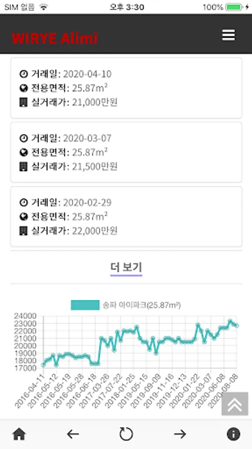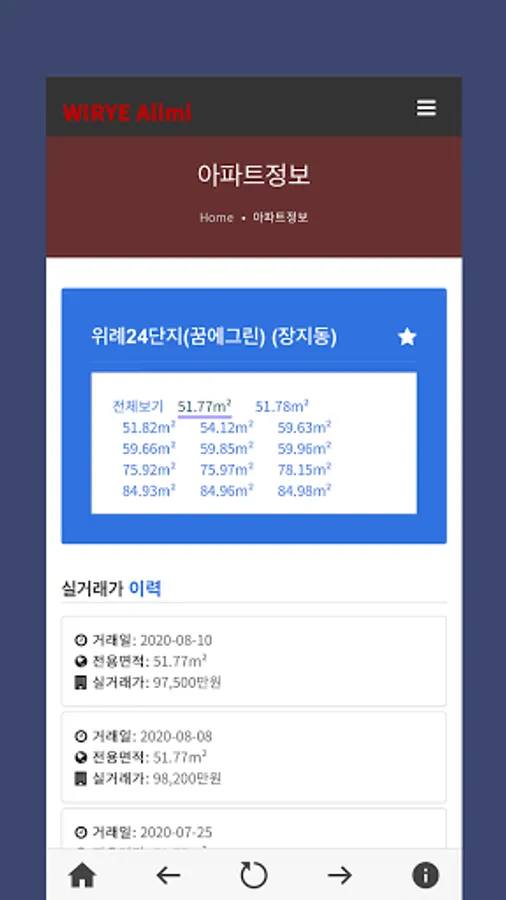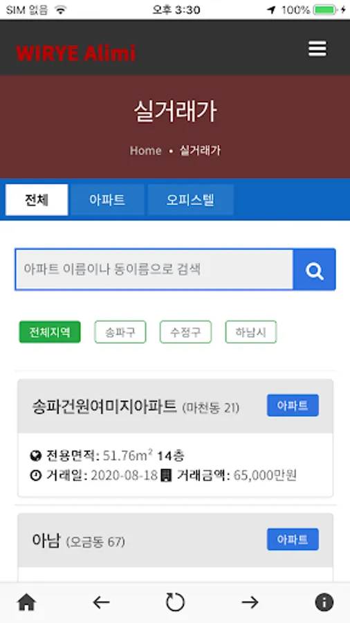 This service allows you to easily view the actual transaction price of nearby apartments/officetels.