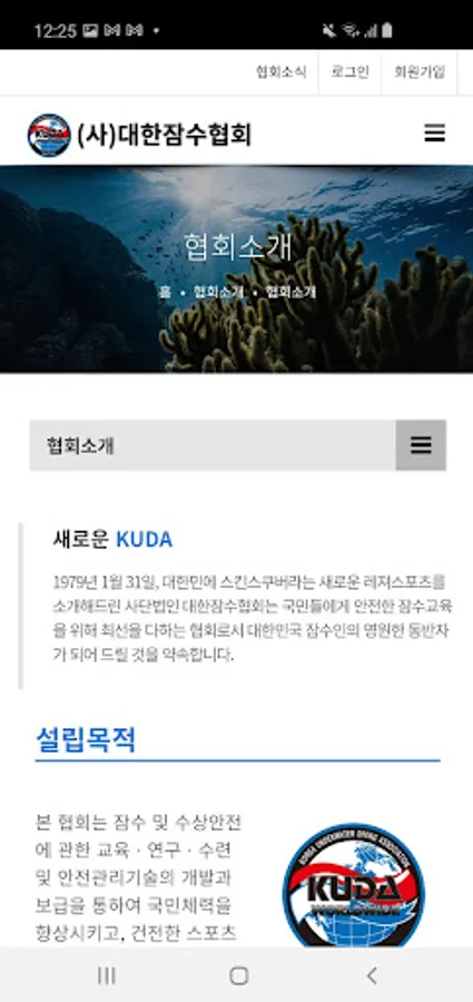 Through education, research, training, and development and dissemination of safety management technology related to diving and water safety, the association improves national fitness, creates a healthy sports climate, provides general guidance to affiliated groups, and conducts underwater nature conservation activities. It was established for the purpose of contributing to national development and the development of national culture.