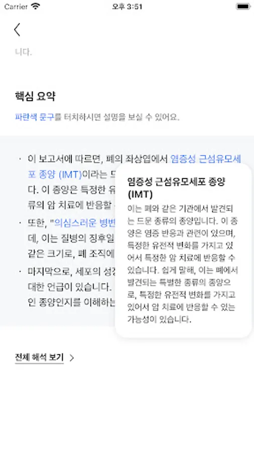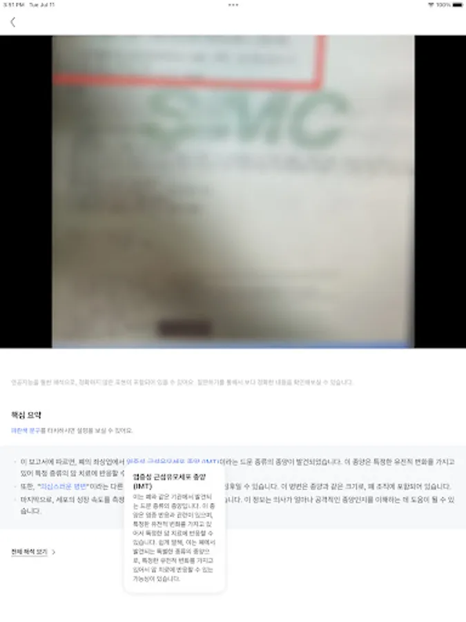It automatically translates difficult English medical terms and abbreviations, MRI, CT, and biopsy results received in hospitals to make it easier to understand.