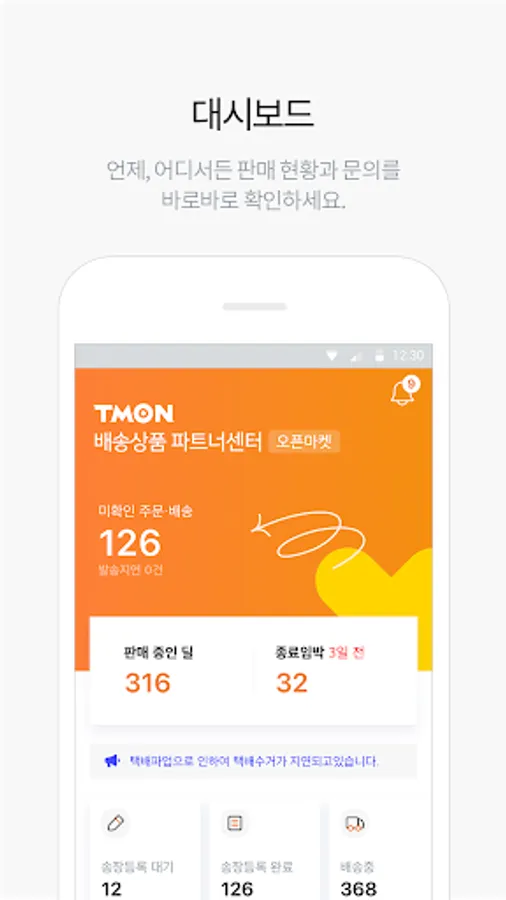 You can check the status of deals on sale, number of unconfirmed orders, number of claim requests, and unanswered customer service inquiries.