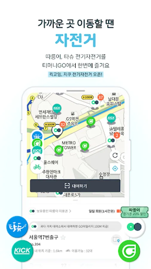 ■ Use shared bicycles and electric bicycles together · You can conveniently use the same voucher you used on the “Seoul Bike Ttareungi” app on T-money GO. · “Daejeon Bicycle Tashu” can now be easily used at T-Money GO without direct registration. · “Kick Going” and “Jiku” electric bicycles can also be used.