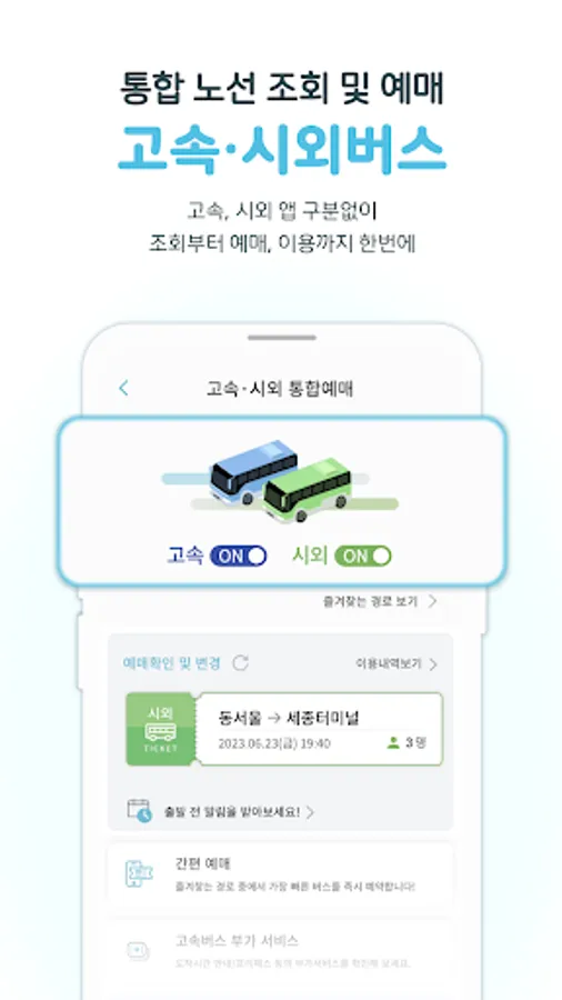 ■ Integrated express/intercity bus reservation · For the first time in the country, route inquiry, reservation, and use of express buses and intercity buses are available through one app, T-money GO.