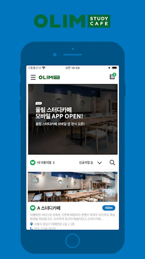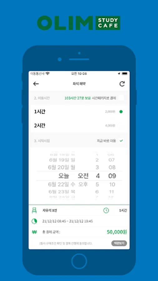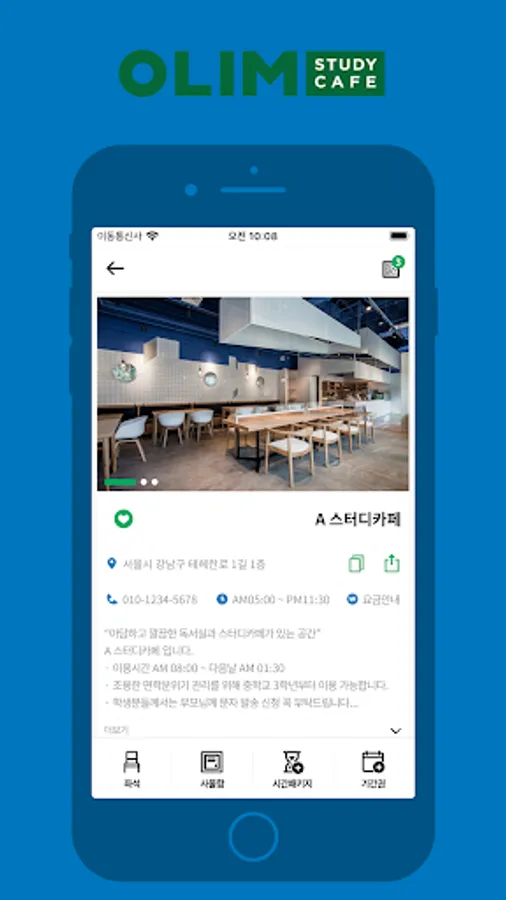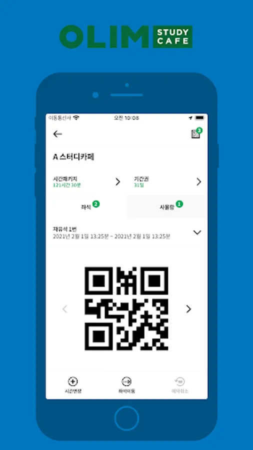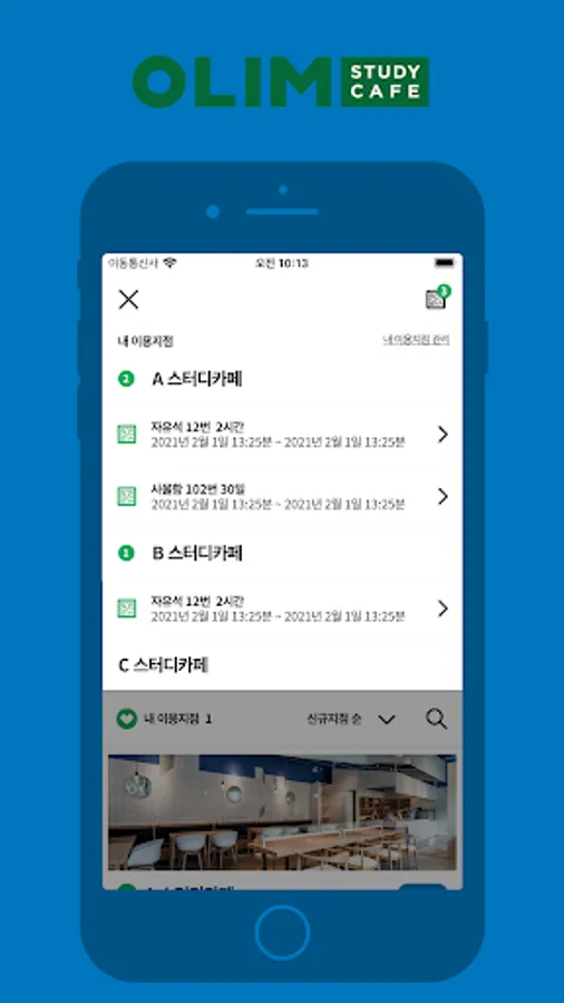Through the Olymstudy application, you can conveniently use and pay for various services, including reservations, and provide convenience to know a variety of information such as access control, usage information, and purchase history by linking with a kiosk.