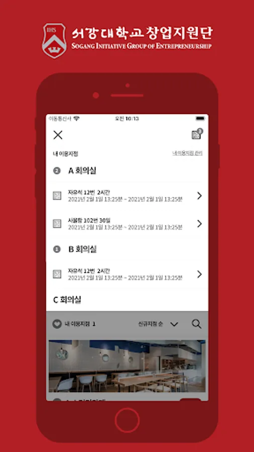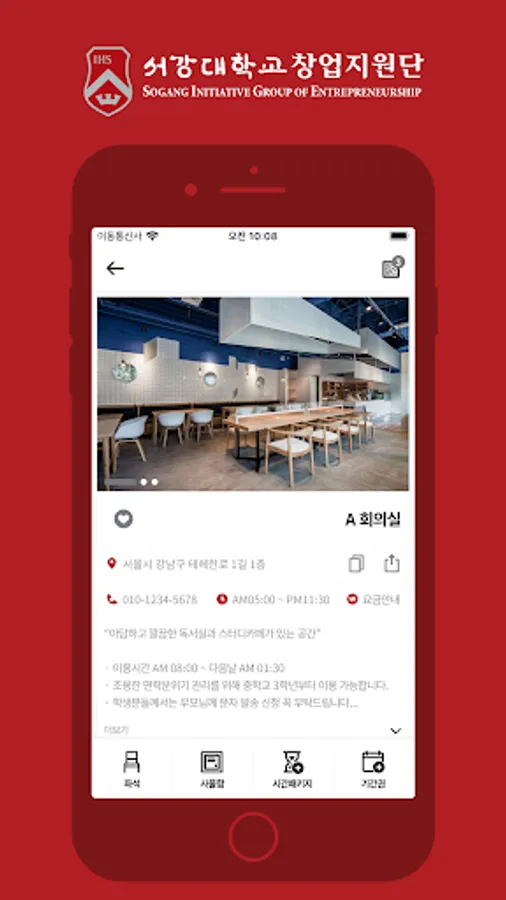 This app allows you to check the seat reservation and status of the Sogang Business Center.