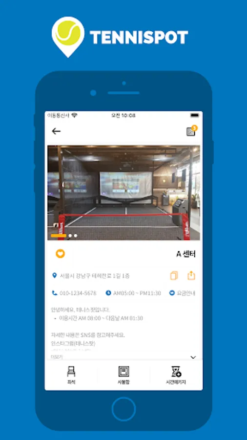 Through the Tennis Pot unmanned application, you can conveniently use the service and make payment at the store where the unmanned dedicated kiosk is installed, and you can use the Tennis Pot conveniently by making a reservation in advance at the desired time.