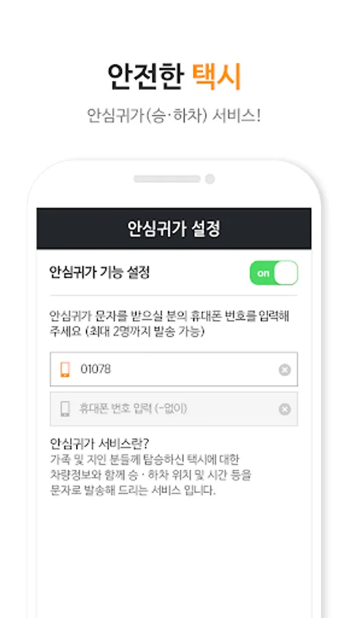 T1 Taxi is a safe return home service that sends a text message to acquaintances such as vehicle information, boarding location / time, get off location / time