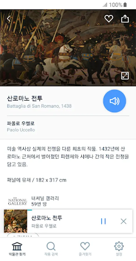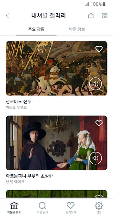 You can download the work information for each museum. You can check work information and listen to audio guides while offline.