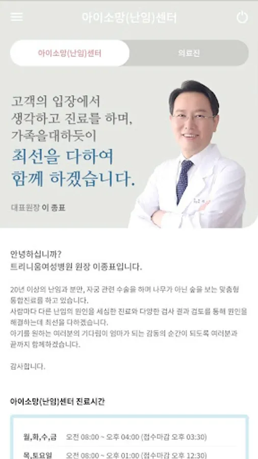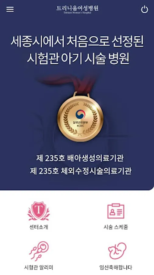 Our Trinium Women's Hospital was opened for the first time in Sejong City Women's Hospital on March 10, 2020 to provide the best medical services for women's health with the foremost spirit and advanced medicine of our customers.