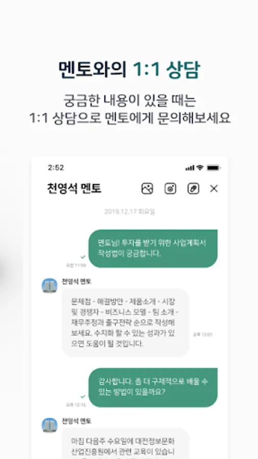 [상담]에서 멘토와의 1:1 채팅으로 빠르고 간편한 문의가 가능합니다.