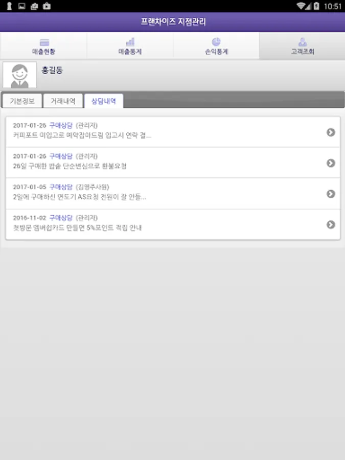 The point (retail, franchise) sales into a point-to-point stars, pumbyeol of sales, integrated customer relationship management (points shared), a franchise high Sahib professional solution for branch-specific inventory management - UB plus manage the franchise headquarters.