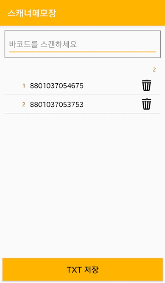 This app saves barcodes scanned with a barcode scanner as a txt file.