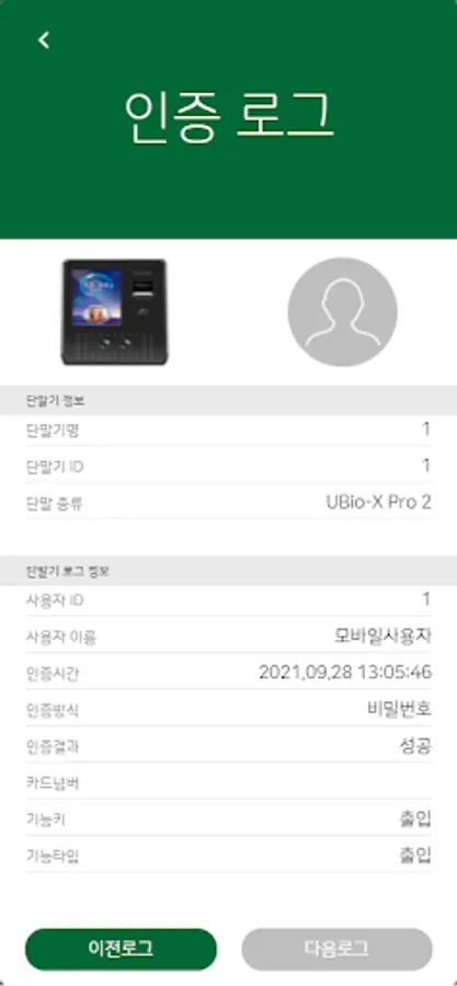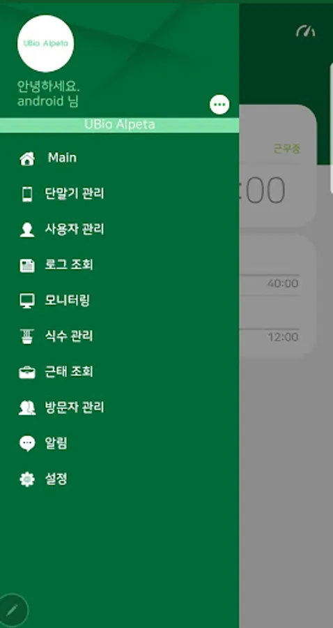 : Mobile version of UBio Alpeta, an integrated access control security solution system, access control users, terminals, logs,
