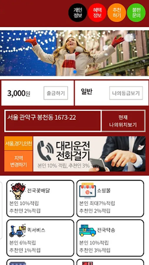 추천인이 대리운전 할 때마다 3프로적립 (지방적립 별도)