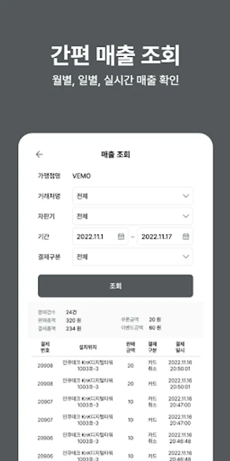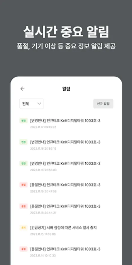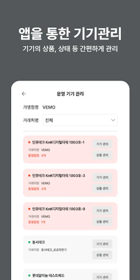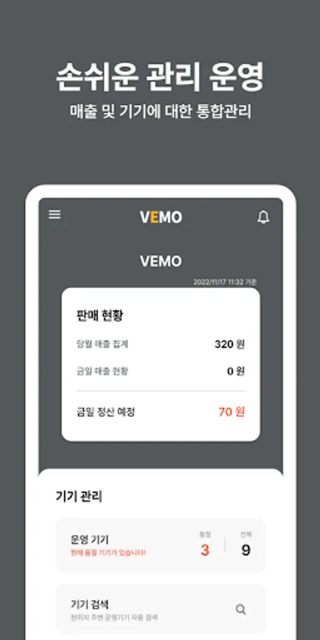 - Provides notifications of important information necessary for managers, such as out of stock, device abnormalities, and notices.
