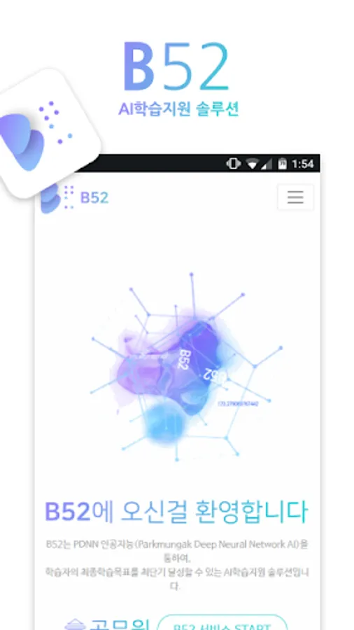 B52 is an AI learning support solution that provides learners with optimized learning information through NEU MF AI (Neural Newtwork Matrix Factorization AI).