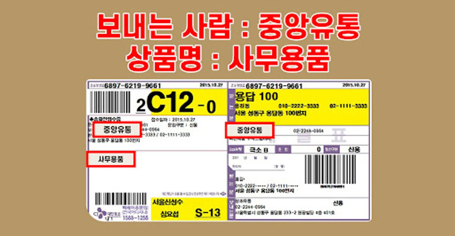 -Safe delivery ☞Delivery box (product name: "office supplies", sender: marked as "Central Distribution")