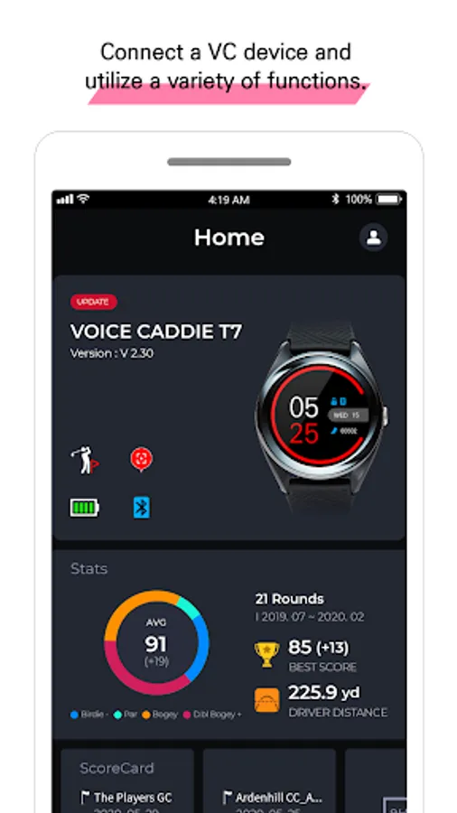 - Connecting VoiceCaddie's golf watch(G1, T5, T6, T7, T8, T9, T-Ultra, SL2, SL3) with this APP will enhance GPS locking time when you are in start point.