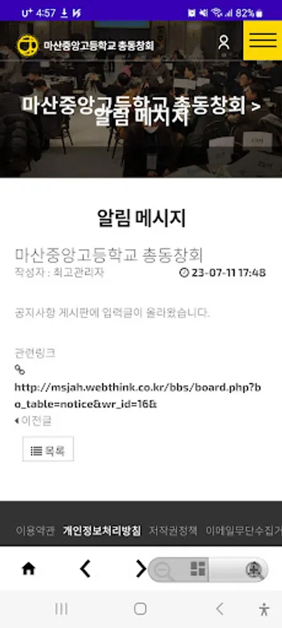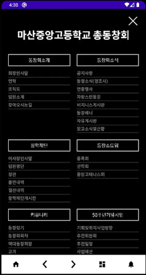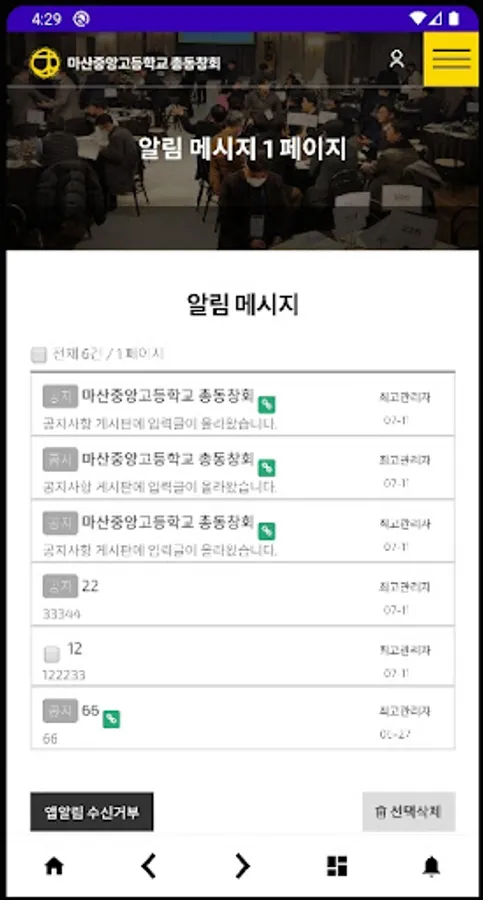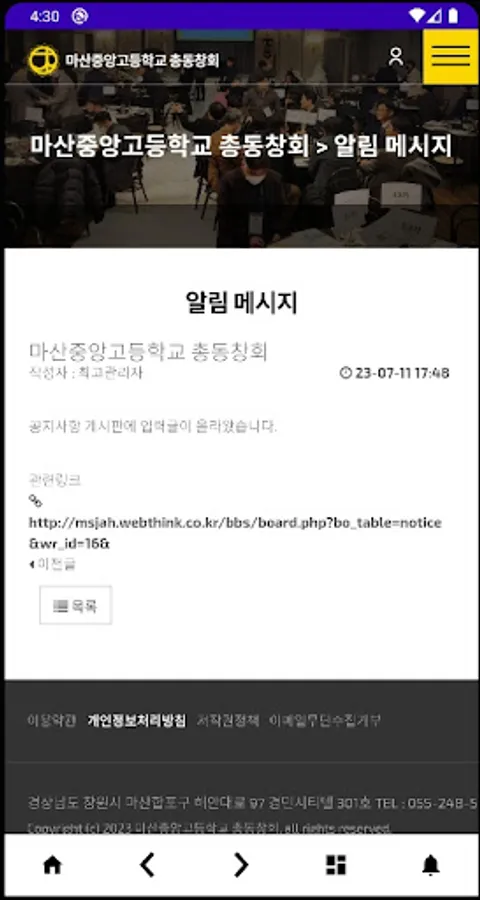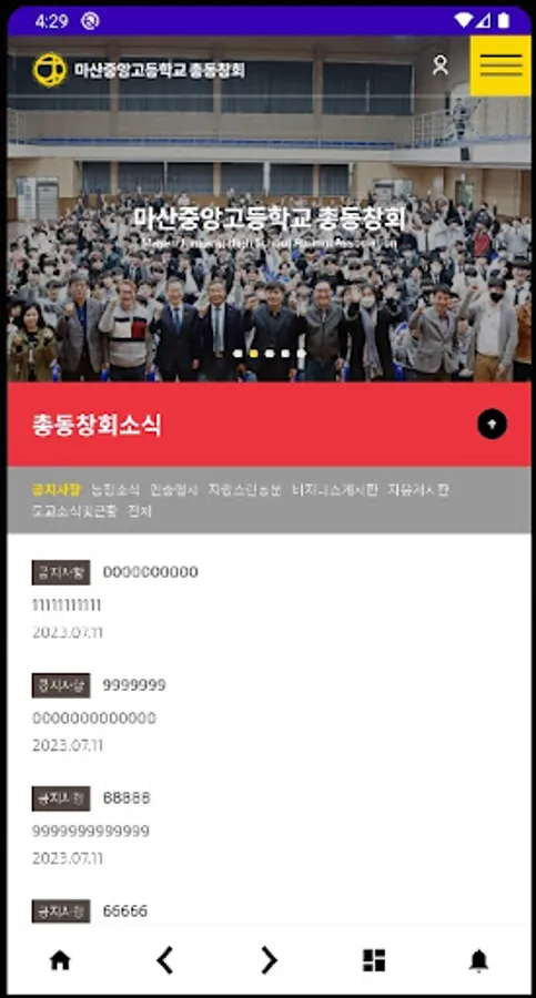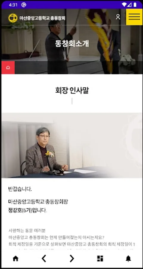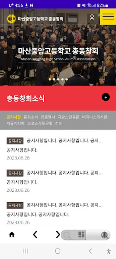 It was created with the purpose of being able to easily use the homepage of the Masan Central High School Alumni Association on mobile phones. You can access the homepage through the app and receive notifications about news from alumni or announcements from alumni meetings.