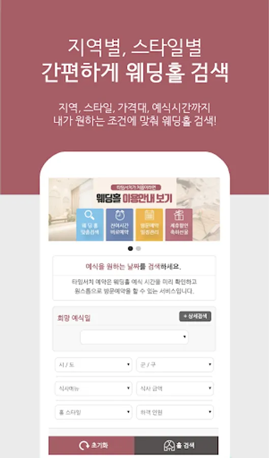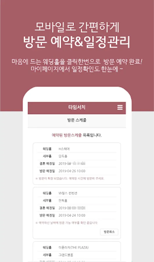 If you enter the desired schedule only by mobile, it will be convenient to visit the wedding hall.