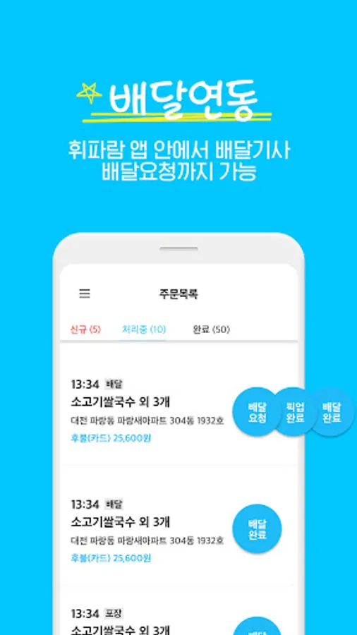 From ordering to delivery request by delivery driver, pickup completion, and delivery completion with functions