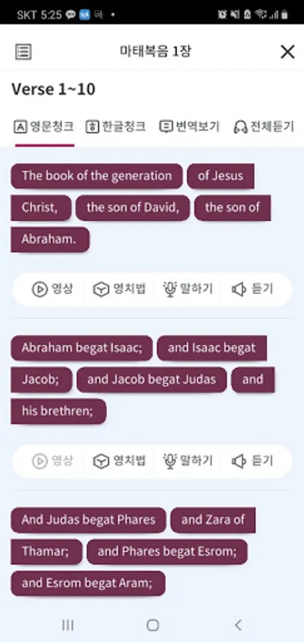 Become more familiar with the English Bible through lecture videos and verse recitations.