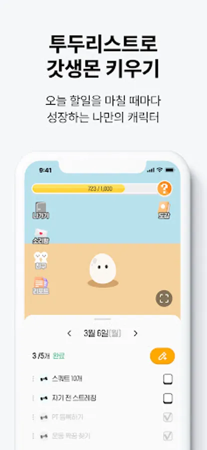 Each time you complete a to-do list, it evolves little by little!