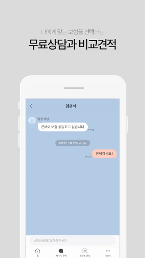- 앱 내의 채팅 기능을 통해 언제든지 설계사와 연락을 주고 받을 수 있습니다.