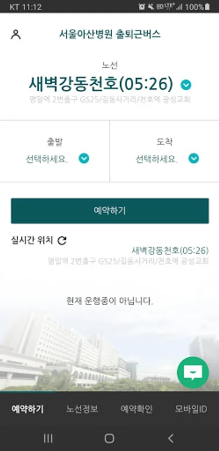 You can reserve a commuter bus through the commuter bus app at Asan Hospital in Seoul.