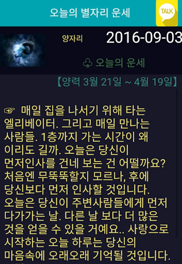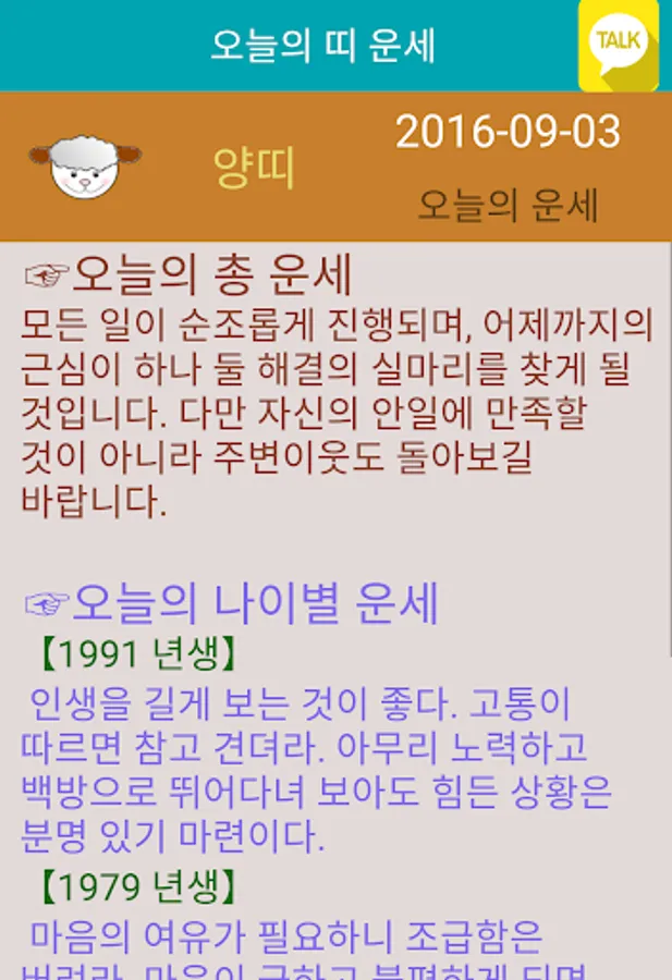 오늘의 띠별 운세와 오늘의 별자리 운세는 무료로 카카오톡을 통해 전송을 해 줄 수 있습니다.