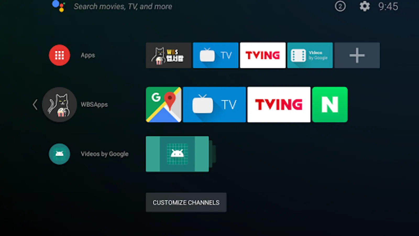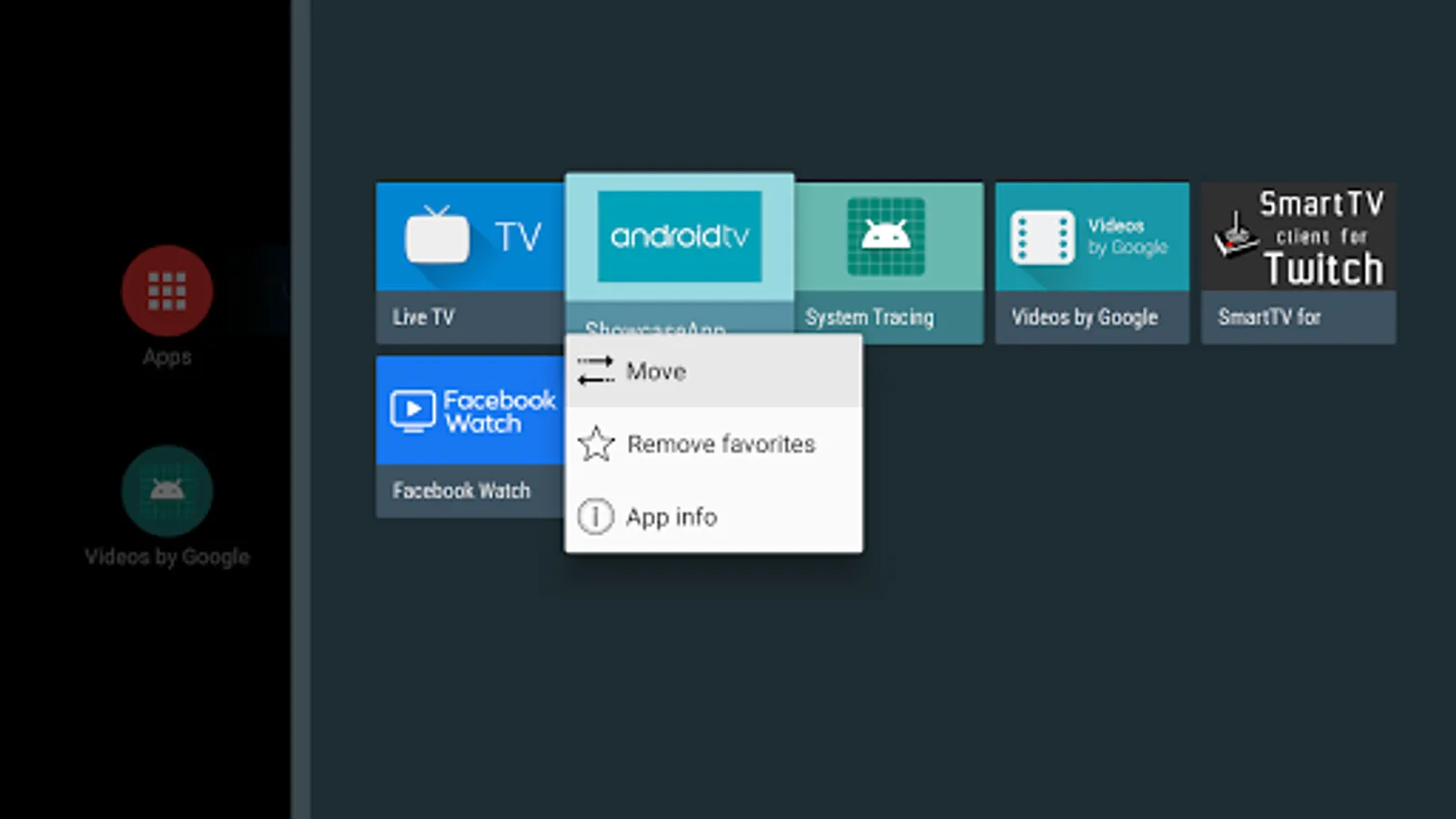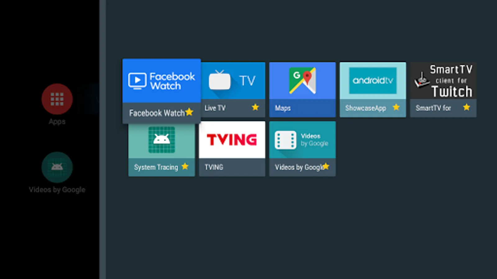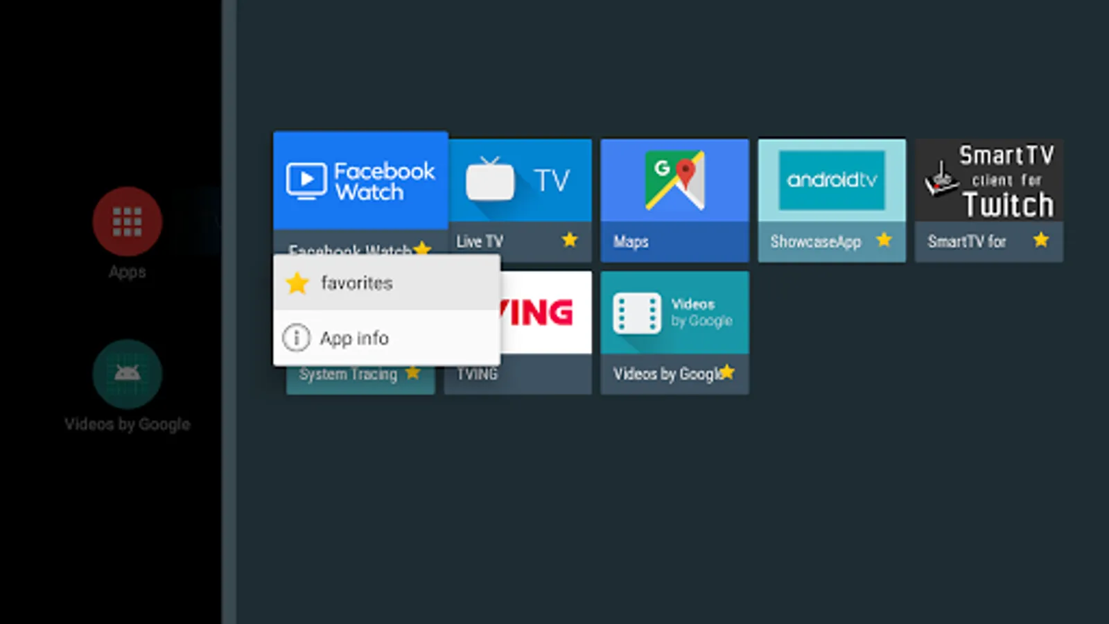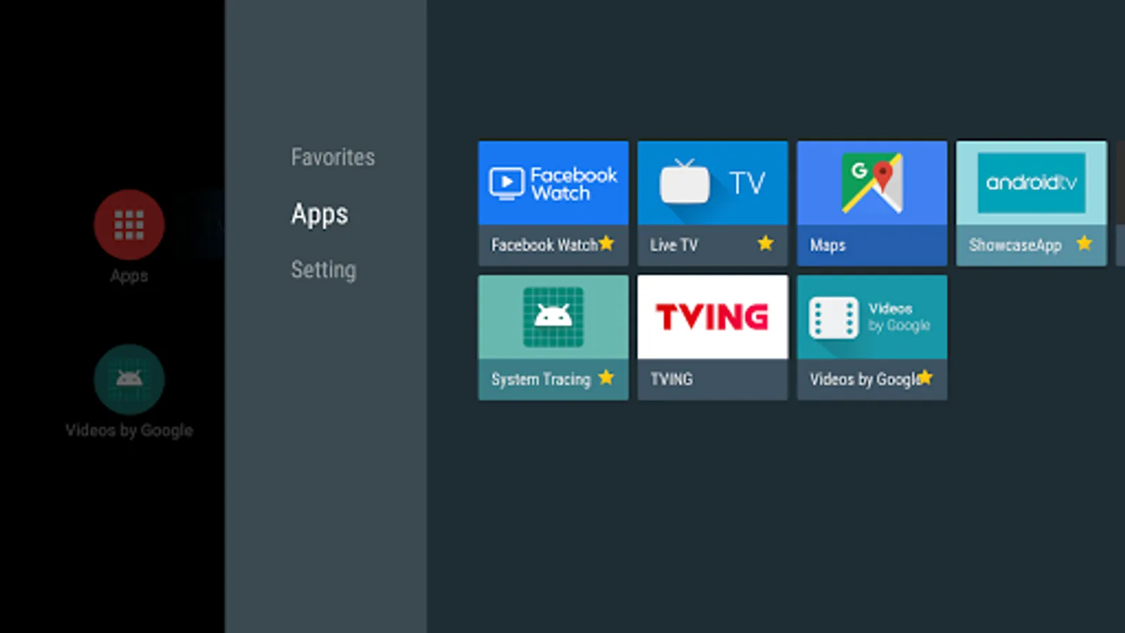 An app drawer that makes it easy to view manually installed apps that are not visible in the TV launcher.