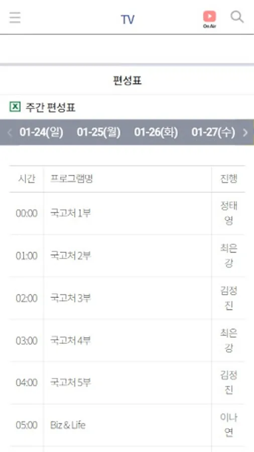 Schedule - Provided by the daily Korea Economic TV program schedule