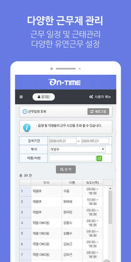 Ontime provides a convenient time and attendance management system with various work schedule management, mobile and PC commute records, and provides a solution optimized for various working environments through PC work records, power management and PC control.