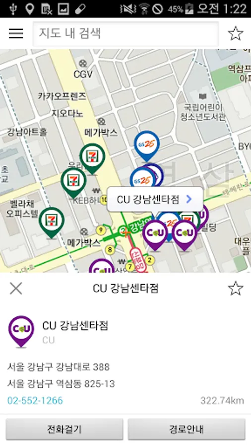 Convenience store location information is provided based on my location.