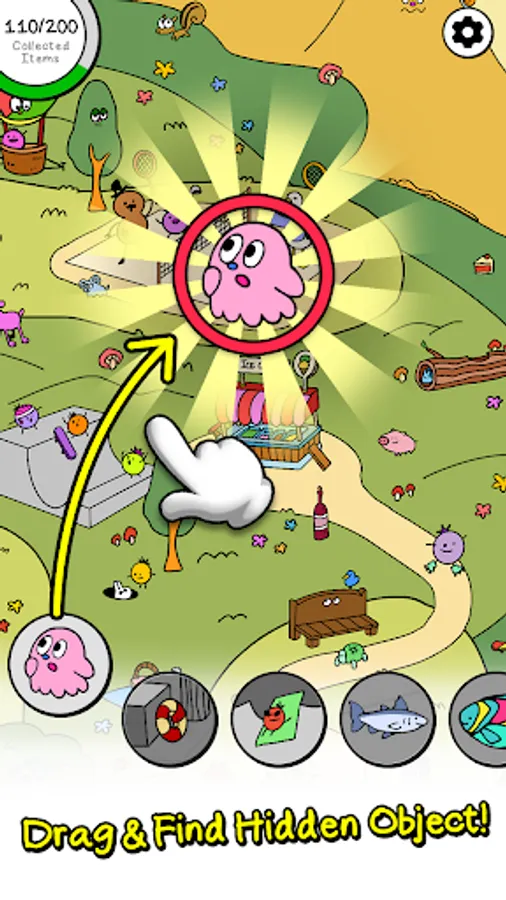 👆 Collect the hidden objects you want to find by dragging them from the Piece List.