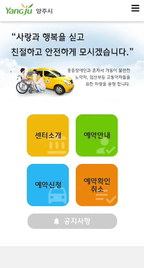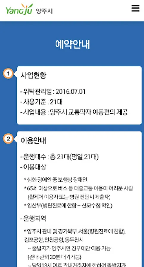 Yangju-si transport support center reservation application system is used for departures and destinations