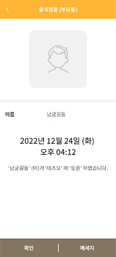 2. Narshachulcheck (for parents): If attendance is verified through the "Narshachulchek (attendance record)" app at an academy or school, the child's photo is sent to this parental app.