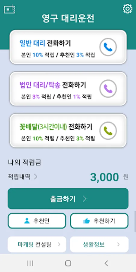☞ Withdrawal in cash for flower delivery, surrogate driving, quick delivery, and vehicle consignment total of 10,000 won or more