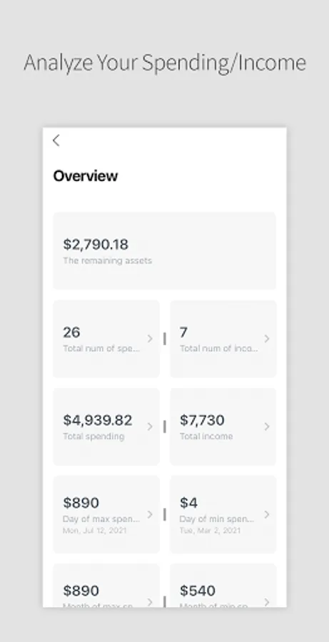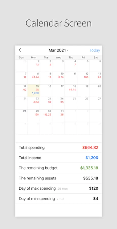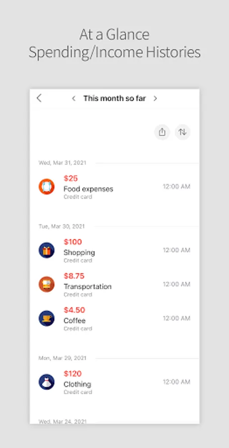Total histories of each month's and day's spending/income