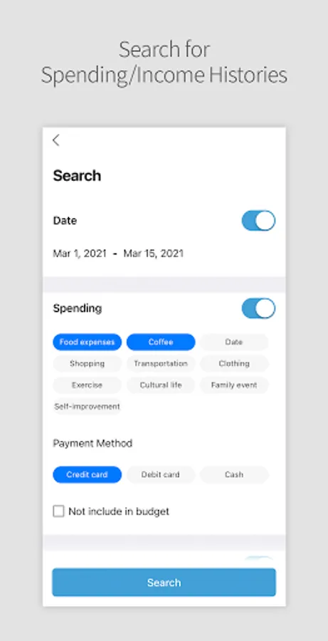 Receipts attachment on your spending history and memo function, writing the details ( time/date )