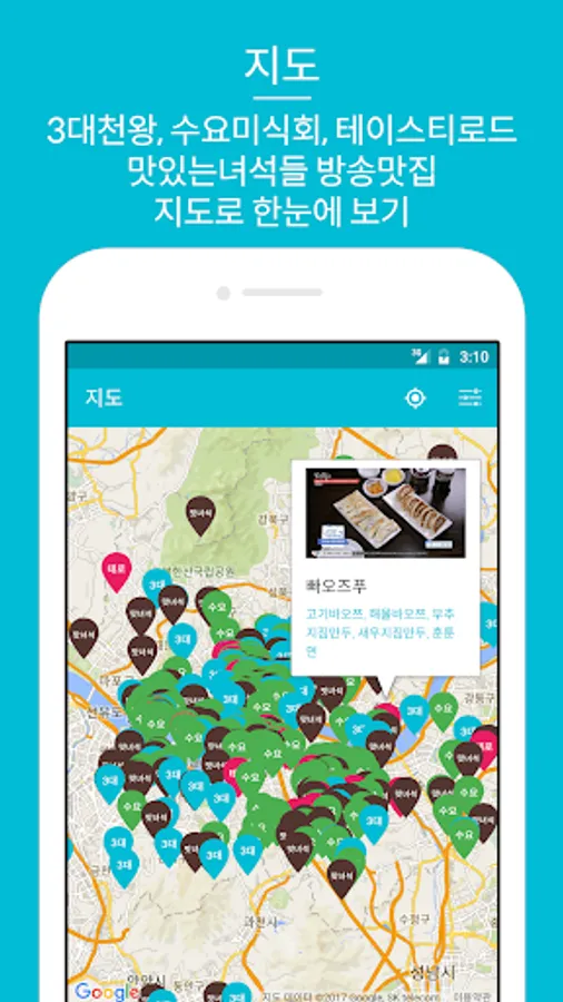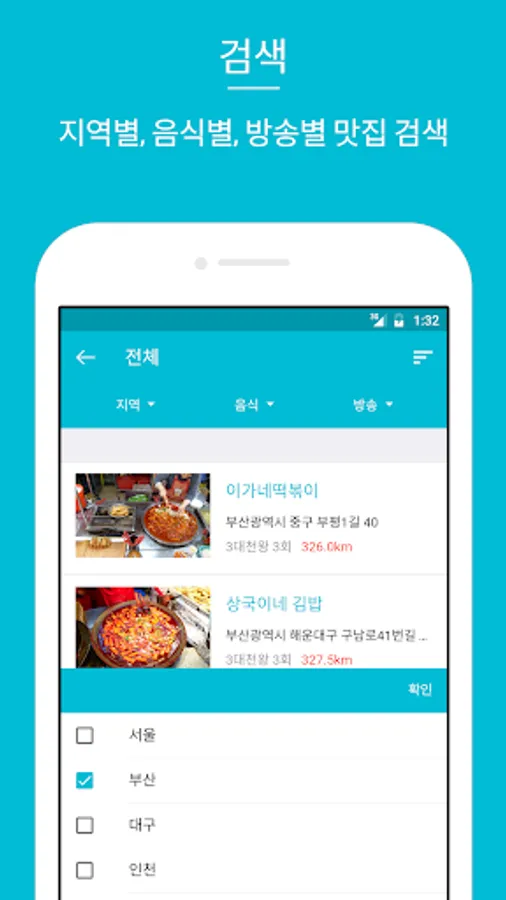 Browse restaurants by region, food, and broadcast, and search for restaurants by keyword.